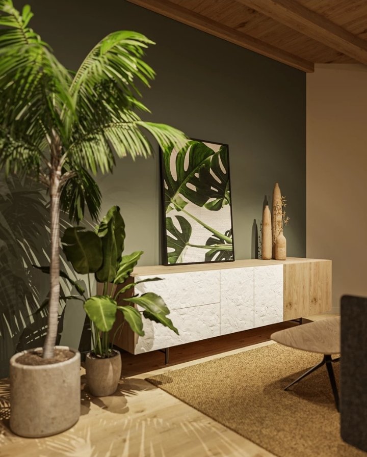 Ideea principală care se află la baza designului interior este dată de crearea unui spațiu echilibrat cu o ambianță organică, exprimată prin elemente specifice naturii și pădurilor tropicale. Astfel, paleta de culori folosită variază de la nuanțe calde precum tonurile de bej și alb murdar, până la verde pastel, gri, și desigur maro, toate acestea în contrast cu nonculorile alb și negru.