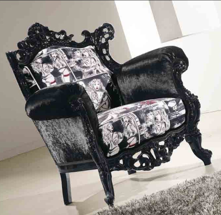 Mobilierul are forme atipice şi piesele par că fac parte dintr-un puzzle.Mesele sunt rotunde, scaunele sunt din lemn sau material plastic colorat, cu forme inspirate din mediul înconjurător, canapele sunt cât se poate de simple şi de colorate.