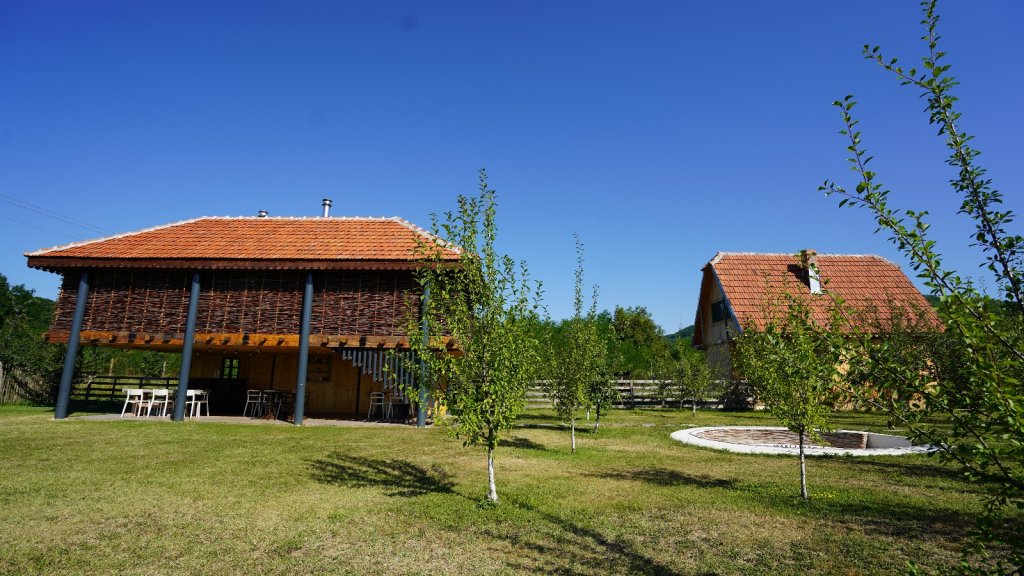 Gospodăria moșnenească se află în mijlocul unei livezi de pruni si proprietarul a incercat sa ii pastreze farmecul autentic.