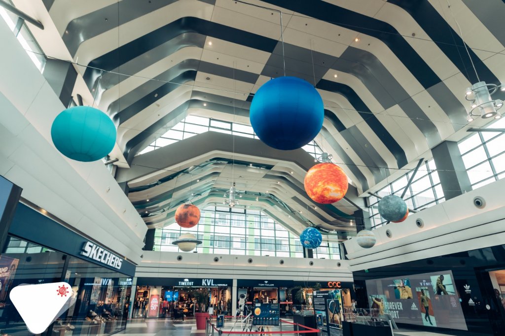 Cel mai mare satelit din sistemul solar, Luna, cu un diametru de 5 metri, se găsește într-o formă 3D supradimensionată, la etajul 1, în zona restaurantelor.