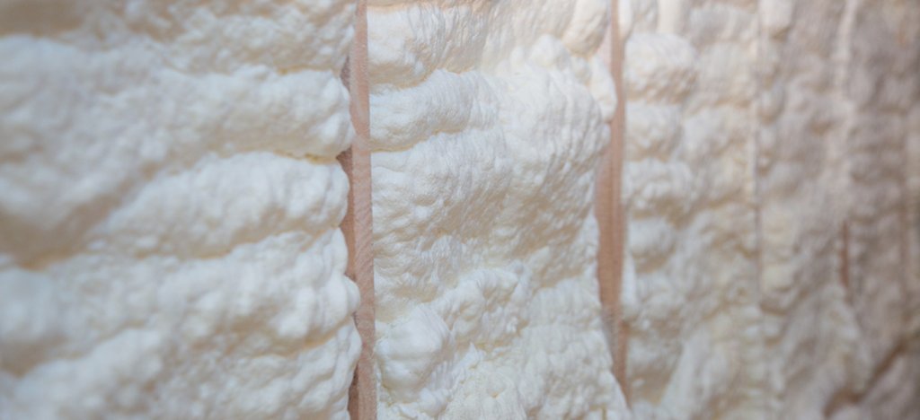 - când cei doi compuși chimici ai săi se întâlnesc, rezultă o spumă fie în varianta cu celulă deschisă, fie în varianta cu celulă închisă, cea din urmă fiind extrem de densă, deci extrem de eficientă, o barieră termică solidă. Varianta cu celulă închisă a spumei se aplică pe pereți, interiori și exteriori, iar pe plafon, pod, mansardă și pardoseală se aplică spuma cu celulă deschisă, cea cu densitate comparabilă cu ale celorlalte materiale izolatoare.
