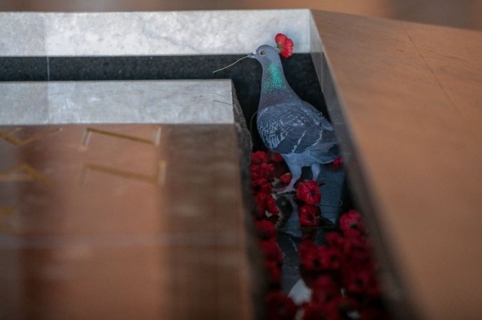 În Australia, o pasăre a decis să își aducă omagiile pentru soldații căzuți la datorie într-un mod foarte diferit. La începutul lunii octombrie 2019, personalul care se ocupă de “ Australian War Memorial", monument care comemorează primul război mondial, a observat că florile de maci depuse la “ Mormântul Soldatului Necunoscut Australian” au început să dispară, acest lucru a cauzat un pic de confuzie și asta până când angajații au început să investigheze cauza dispariției florilor. Așa au observat că un porumbel și-a construit cu grijă, un cuib la marginea unui vitraliu. De fapt, porumbelul care era hoțul de maci, a fost o surpriză plăcută pentru aceștia având în vedere rolul jucat de păsări în timpul războiului.