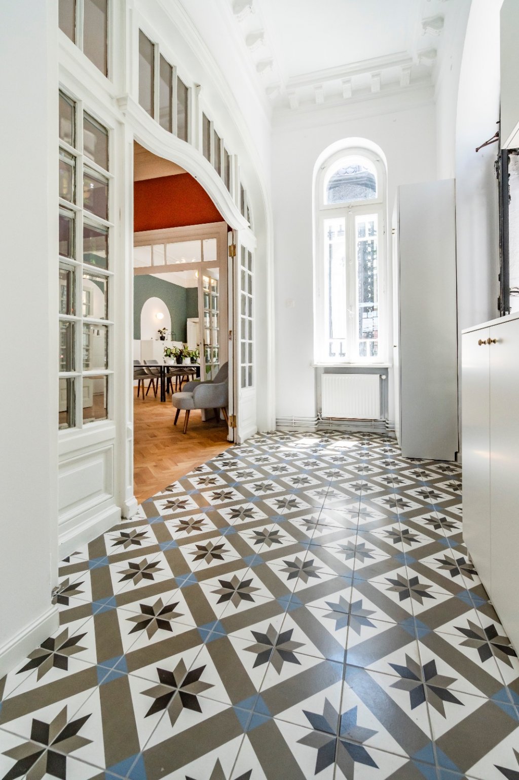 Elementele contemporane au fost combinate cu success prin utilizarea obiectelor de décor realizate de designeri români . Paleta cromatică deși este inspirată de perioada de început a casei a fost readaptată la prezent.