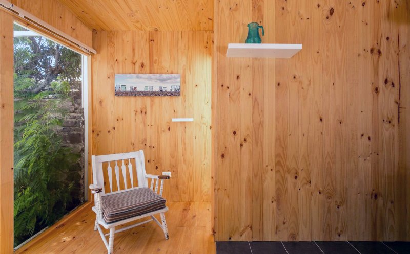 Sistemul structural ales este cel tradiţional din lemn, cu elemente constructive standard din pin. Casa a fost construită de un singur om, un tâmplar, în doar două luni.