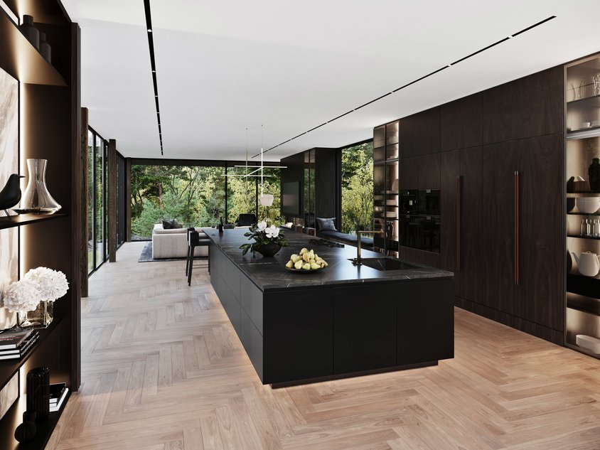 “Atunci când proiectăm, întotdeauna lăsăm terenul să vorbească mai întâi şi îi răspundem acestuia. Este ca şi cum locuinţa este născută din peisaj şi se ridică din acesta. Designul care a rezultat îmbină estetica noastră modernistă cu intimitatea şi contextul zonei rurale pentru a crea o experienţă luxoasă unică”, spune Christopher Dierig, partener în cadrul S3 Architecture, specialiștii care au colaborat cu Aston Martin. Proprietatea mai cuprinde trei case de oaspeţi construite pe malul lacului învecinat. Preţul se ridică la 7,7 milioane de euro.