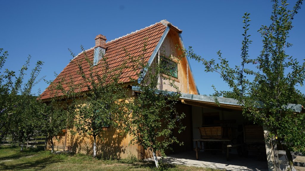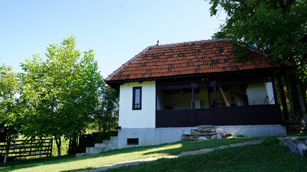 Gospodăria moșnenească se află în mijlocul unei livezi de pruni si proprietarul a incercat sa ii pastreze farmecul autentic.