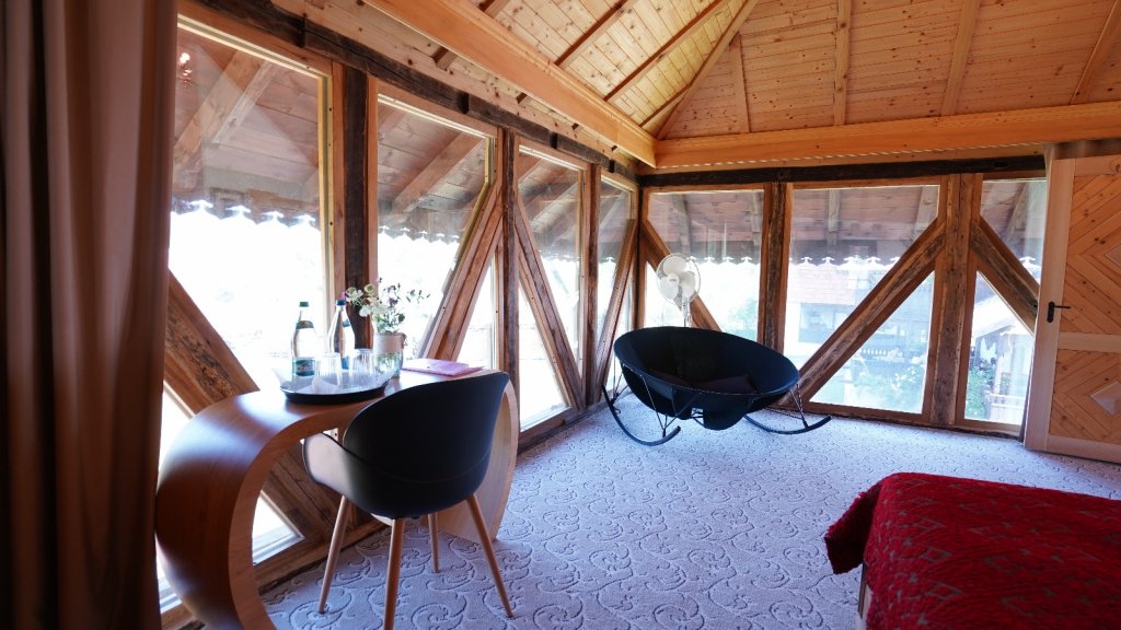 La interior amenajarea a pastrat tema traditionala romaneasca, rezultatul este un design care inbina mobilierul taranesc vechi si confortul adus de tehnologia secolului 21.