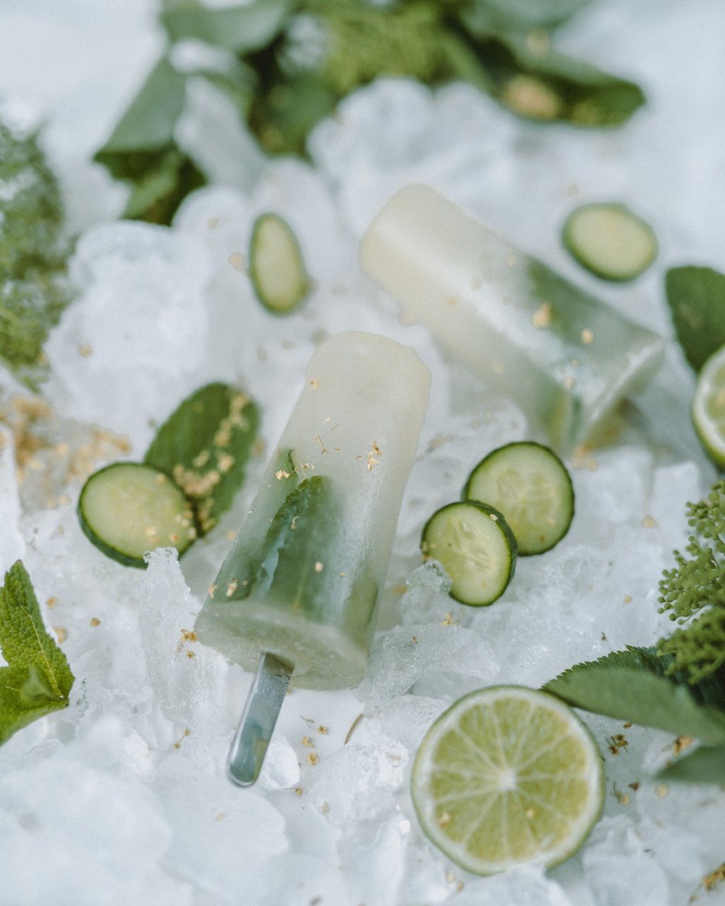 Etape: preparați infuzia de flori de soc, permit ându-i să ajungă la temperatura camerei. iar apoi strecurați. Adăugați sucul de lime și mierea, amestecând până se dizolvă. Tăiați castravetele felii subțiri pe care le așezați în formele de înghețată împreună cu frunzele de mentă. Adăugați ceaiul de soc și puneți totul la congelator pentru minim 4 ore, de preferat o noapte întreagă.