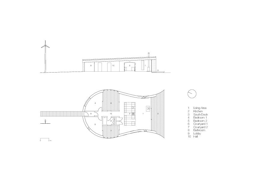 Vagonul de pasageri este invizibil pentru că el este găzduit în interiorul structurii din lemn, reprezentând nucleul casei şi al zonelor de zi. Frumuseţea locaţiei, a mării şi plajei, este dezvăluită prin intermediul ferestrelor înalte şi de pe terasa circulabilă a acoperişului. Adică, da, te poți plimba sau bea o cafe ape acoperiș, printre panourile fotovoltaice foarte ergonomic amplasate.
